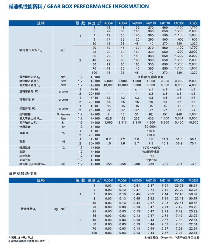2.減速機的使用溫度為 0~40 ℃。