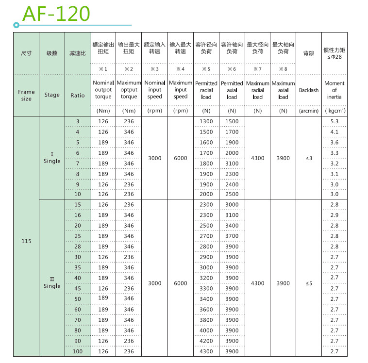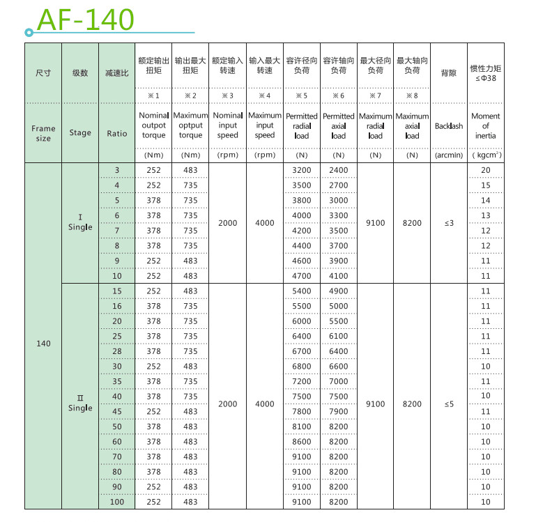 行星減速機因為結構原因,單級減速最大一般不超過10,常見減速比為:3,4,5,6,8,10,減速機級數一般不超過3,但有部分大減速比定制減速機有4級減速。