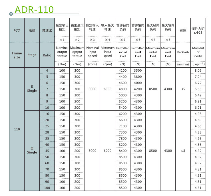 斜齒行星減速機產(chǎn)品參數(shù):